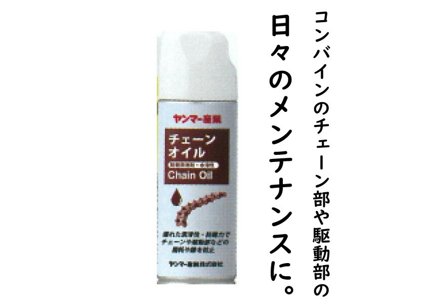 コンバインのチェーン部や駆動部の、日々のメンテナンスに。優れた浸透力で油膜を作り摩耗や伸びを防止、機械を守ります。スプレータイプなので、チェーンを駆動させながらの注油も離れた場所から使用でき安全です。