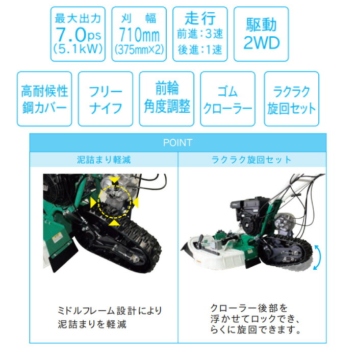 【作業部】刈幅(mm)710/刈高(mm)10~70※4段階/フリーナイフ×8枚