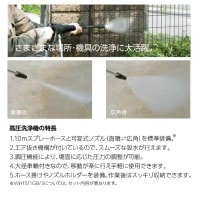 10mスプレーホースと可変式ノズル(直噴、広角)を標準装備。