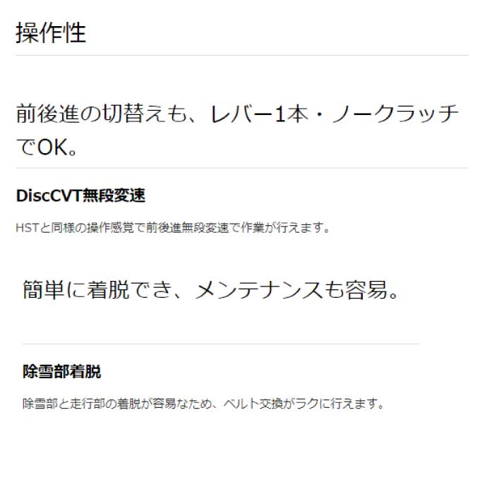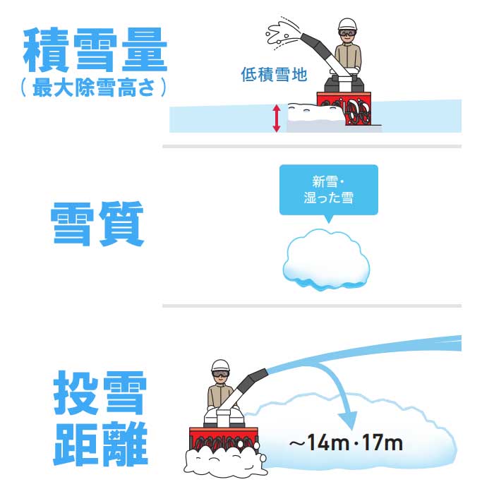 ※除雪性能は、雪質や作業条件によって実際の数値と異なる場合があります。