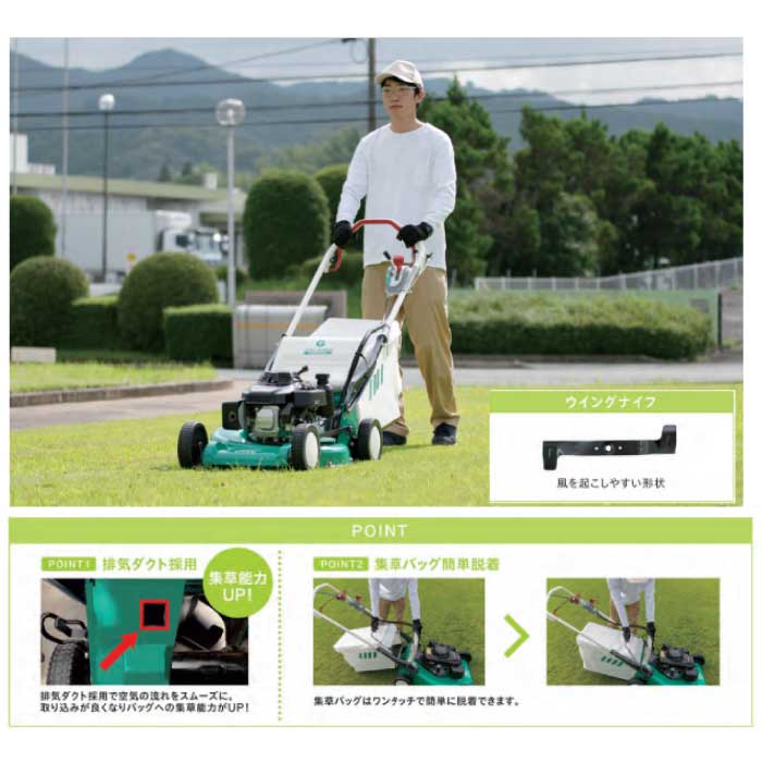 芝刈しながら同時に収草。 学校、工場、公園などの芝刈りに最適です。