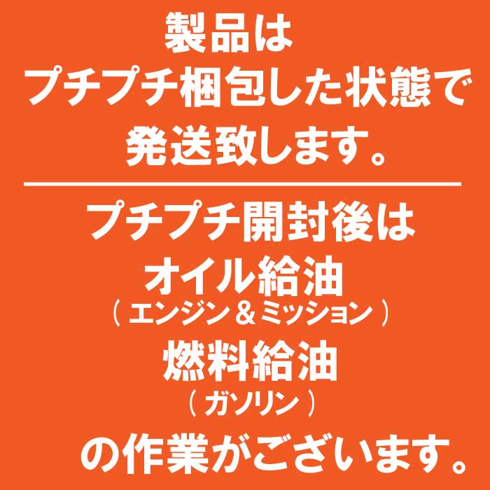 ・燃料(ガソリン)やオイル(エンジン&ミッション)は入っていません。