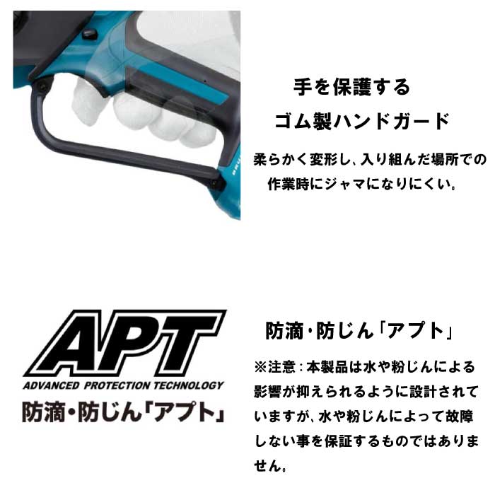 ・機能: ハイパワーブラシレスモータ:〇/防じん・防水APT