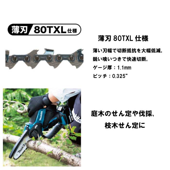 ・切断部:ガイドバー長さ(mm)150/チェーンスピード(m/s)[m/分]8[480]/チェーン形式80TXL-32E