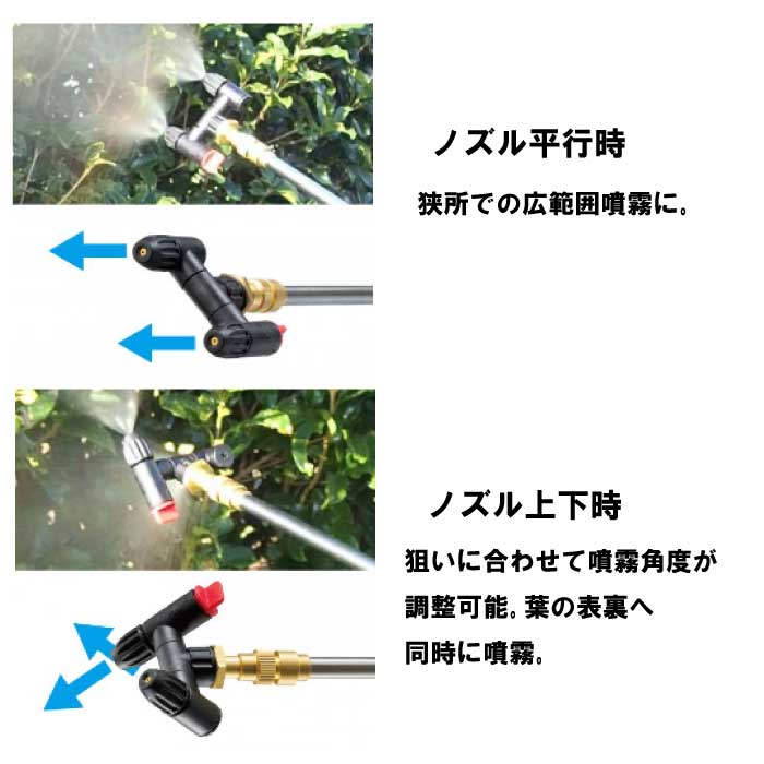 ・標準付属品 H型2頭口ノズル、肩掛けベルト、噴霧管ホルダ